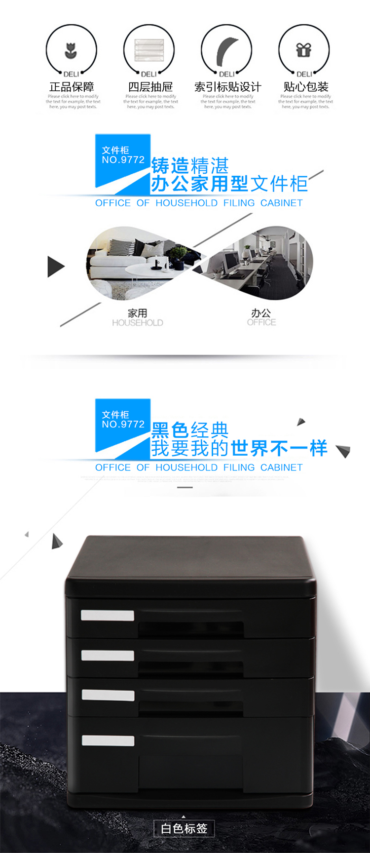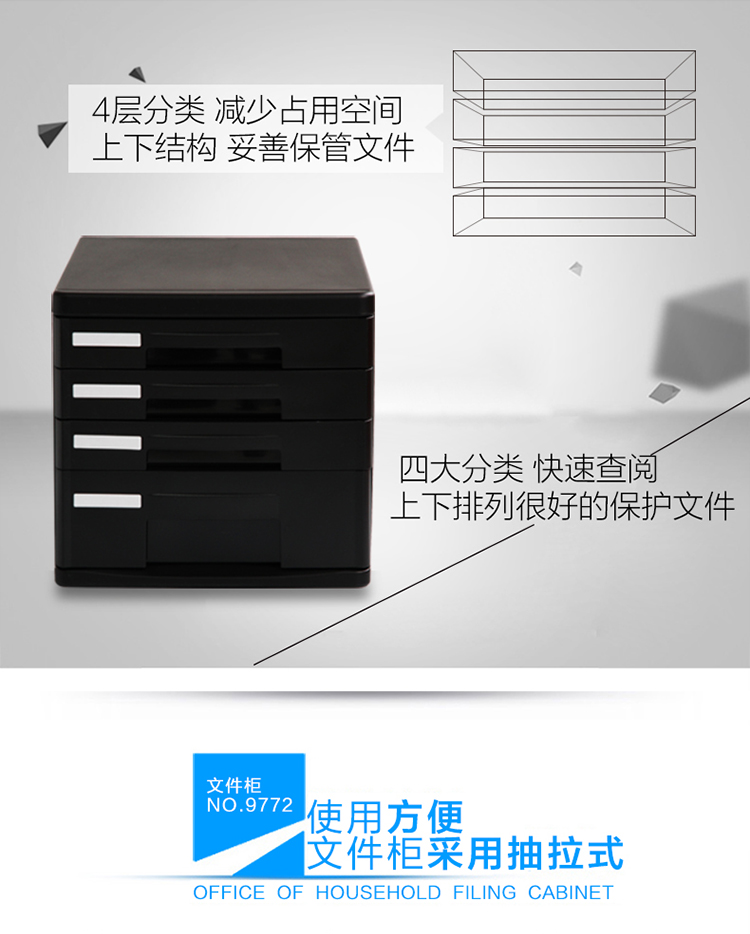 商品名称:得力(deli)4层桌面文件柜 A4拉手资料收纳柜 带索引标签 办公用品 黑色9772