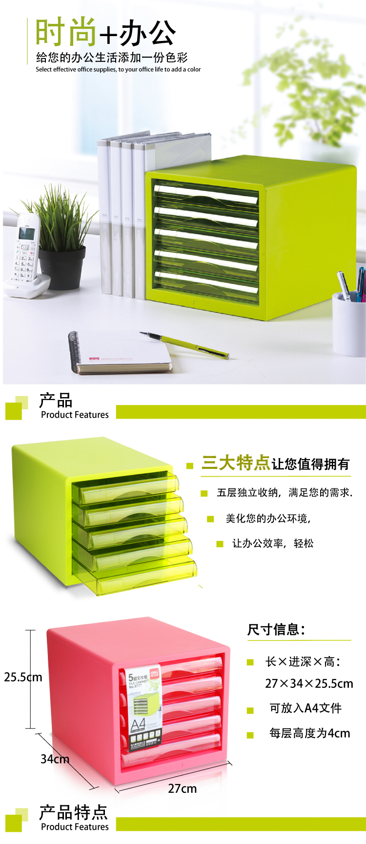 商品名称:得力(deli)5层彩色时尚桌面文件柜 A4资料收纳柜 带索引标签 办公用品 象牙白9777