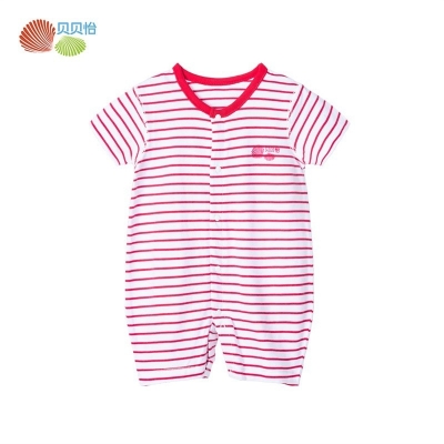 商品名称:贝贝怡宝宝连体衣纯棉夏季男女宝宝前开扣短袖平角哈衣 红白 24个月/身高90cm