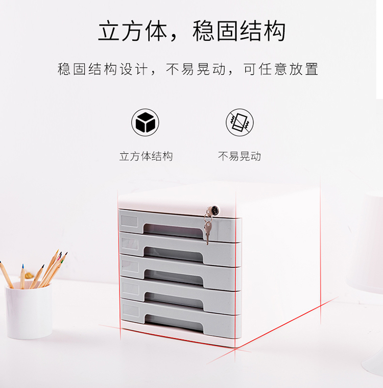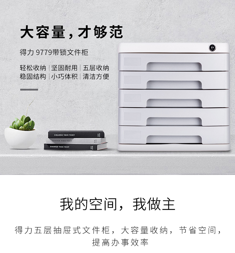 商品名称:得力(deli)5层带锁手拉桌面文件柜 带索引标签抽屉资料收纳柜 办公用品 浅灰色9779