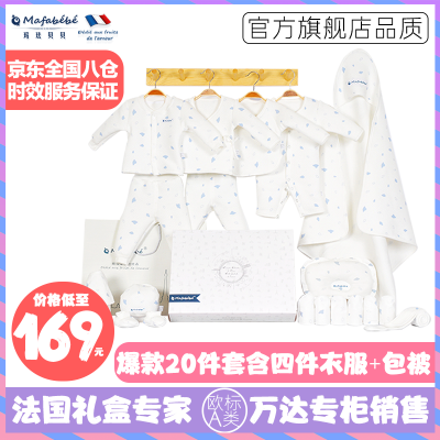 法国mafabebe婴儿礼盒衣服套装新生儿衣服春冬四季男女初刚出生宝宝用品满月百天礼物0-3-6个月 春秋季款20件套天空云朵(浅蓝)系列-981 0-3-6个月左右适合(盒内含59和66码衣服)