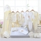 • 包装清单:系扣上衣x1、两用档裤子x1、帽子x1、三角哈衣x1 偏襟系带上衣x1、开裆裤x1、包巾x1、偏襟连体衣x1 系扣连体衣x1、方巾x2、肚围x1、三角巾x2 手套x1、脚套x1