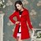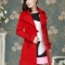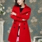 韩文2015冬装新款女装红色双排扣配腰带毛呢大衣.