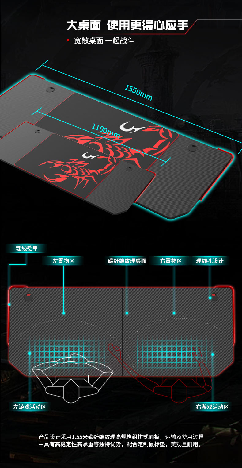 赛途(PSEAT )电脑桌电竞桌书桌台式家用书房高度机械可调节1.6米大桌面理线铠甲设计游戏桌子 I60爱好级电竞桌【升降版1.6米】单桌