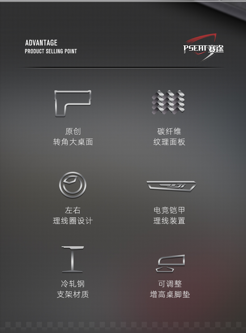 商品名称:赛途(PSEAT)电竞桌办公桌书桌台式家用书房简约L型转角加长大桌面游戏竞技电脑桌子 右L60骨灰级【大桌面1.6米】单桌