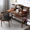 风之意 北欧实木书桌 家用小户型办公桌带书架抽屉写字台现代简约笔记本电脑桌SCMY-SZ0013A 胡桃色/牛角椅(书架款) 1.2m桌子+椅子