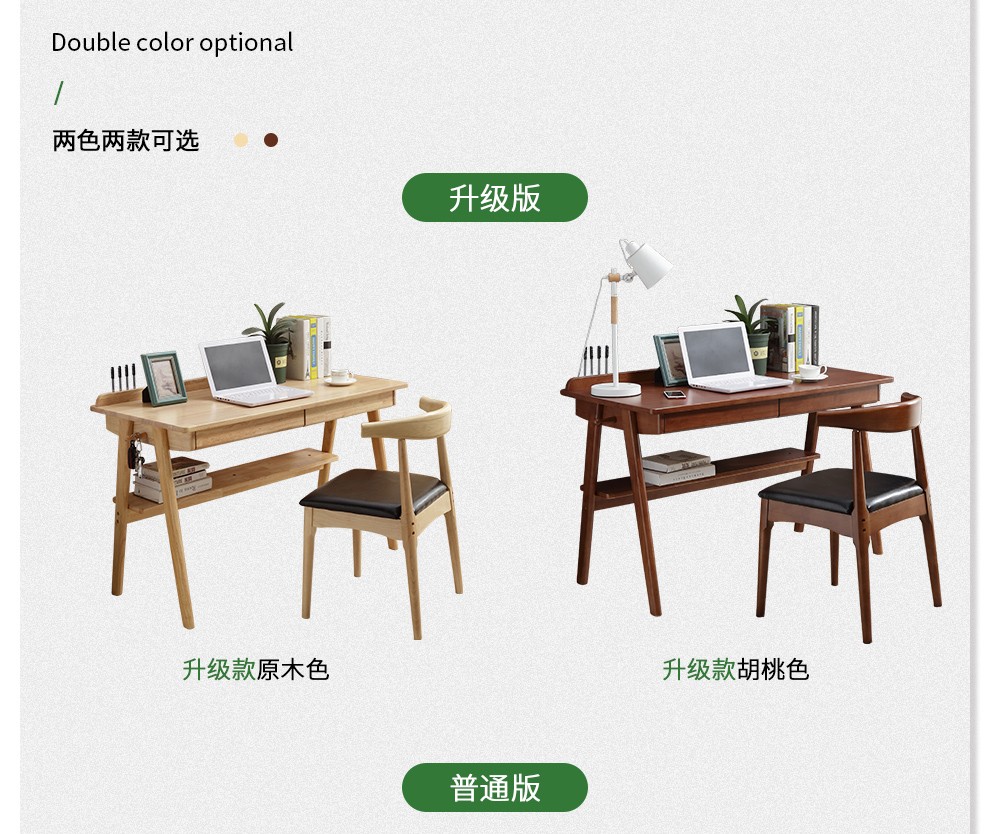 商品名称:风之意 实木书桌儿童书桌北欧日式办公桌小户型写字台家用带抽屉学习桌 原木色(升级版) 1.2m 书桌(双抽屉)
