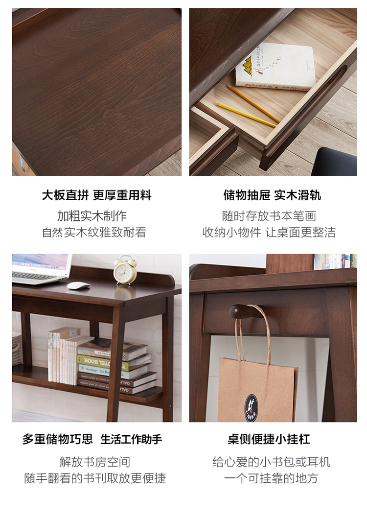 商品名称:家逸 电脑桌实木 简约办公桌 书房写字台书桌 1.2米原木色