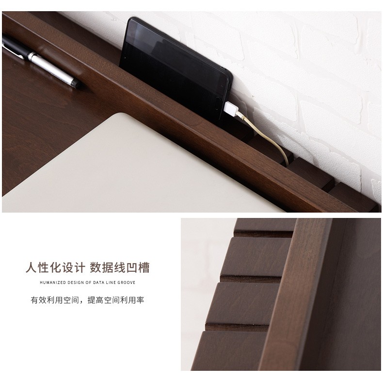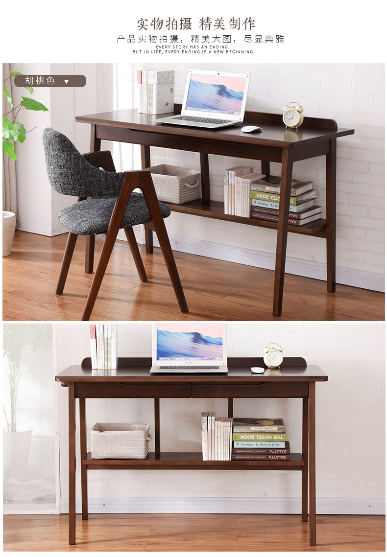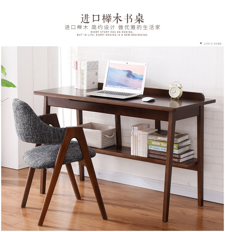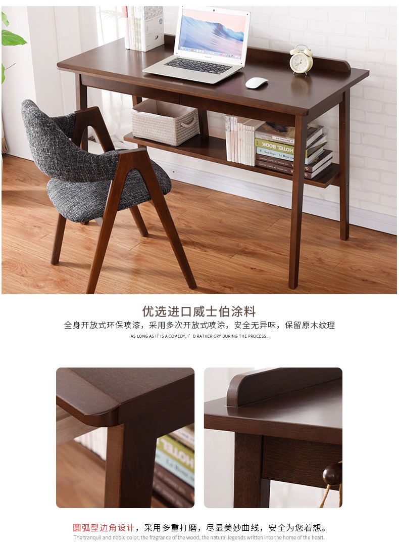 家逸实木书桌电脑桌办公桌书房写字台学生写字桌学习桌书桌书架组合 1米胡桃色+A椅