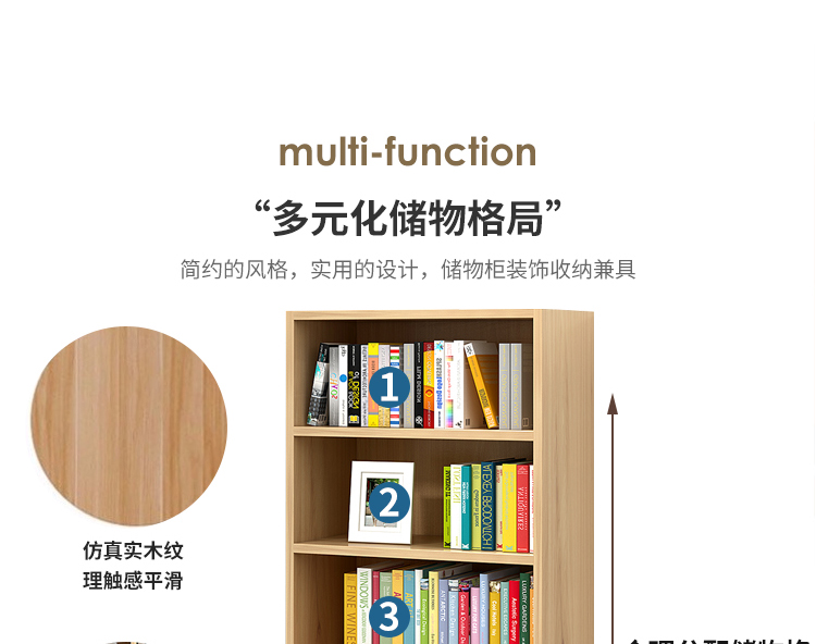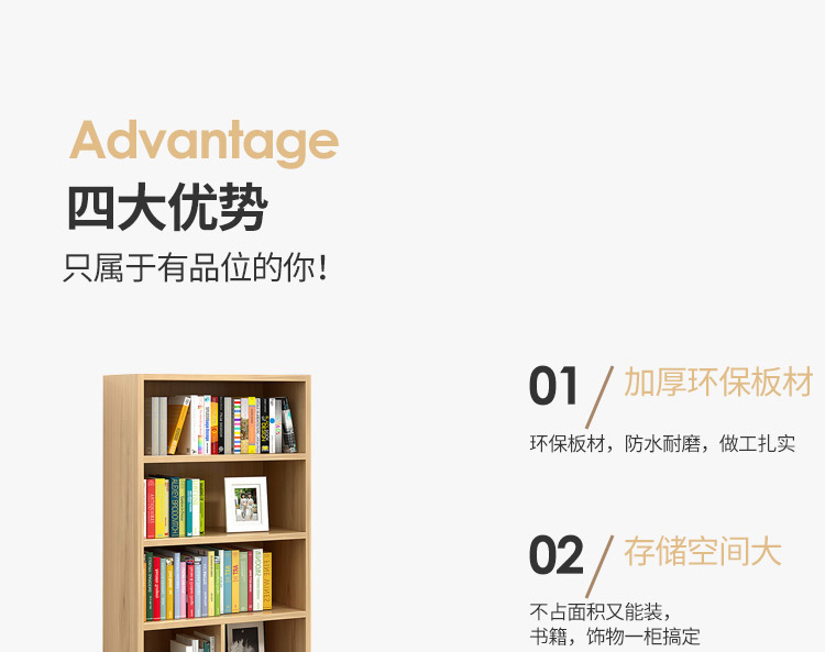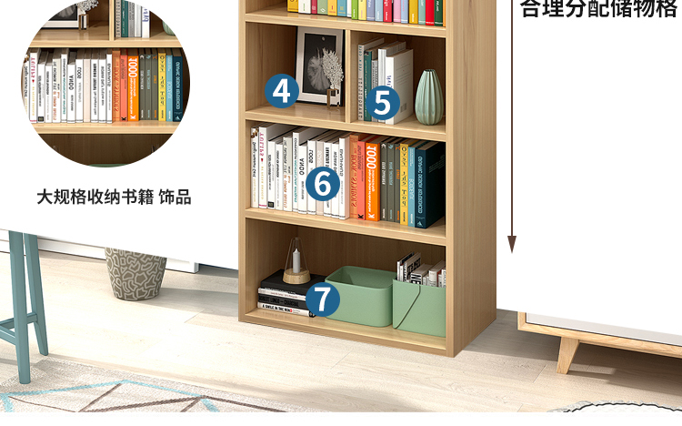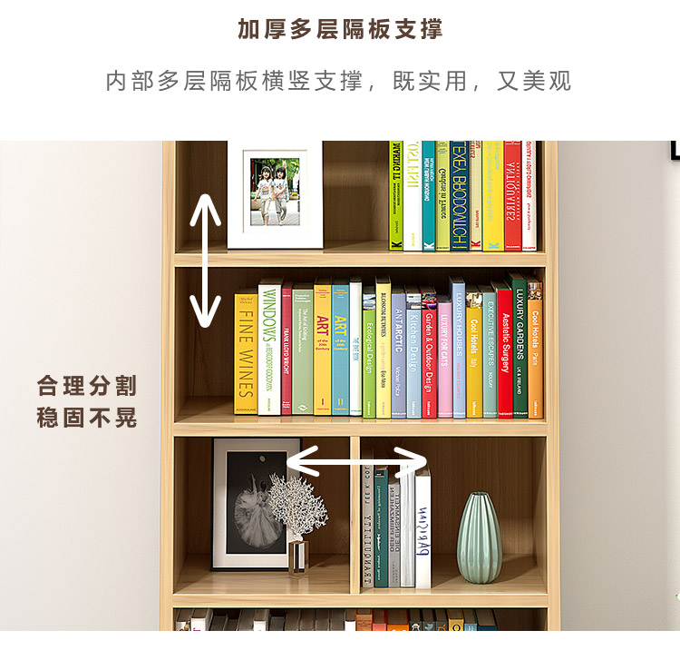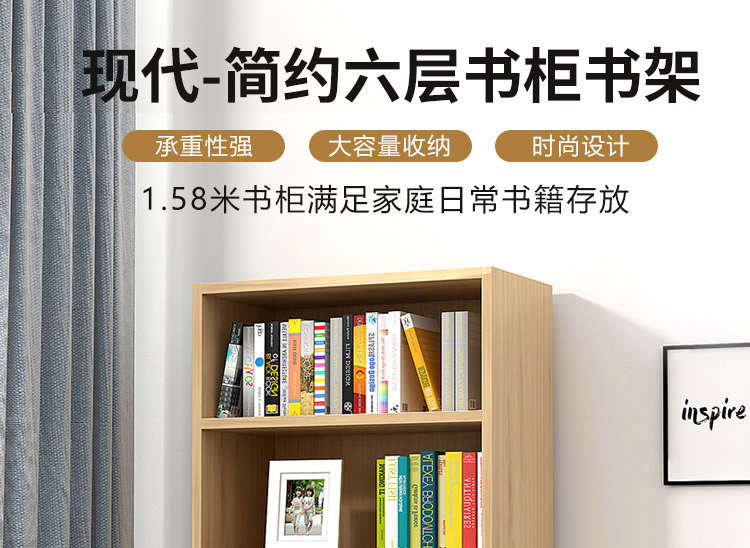 商品名称:木以成居 书柜书架落地 1.58米简易简约实木色储物收纳柜子 松木色六层加大款 LY-4122