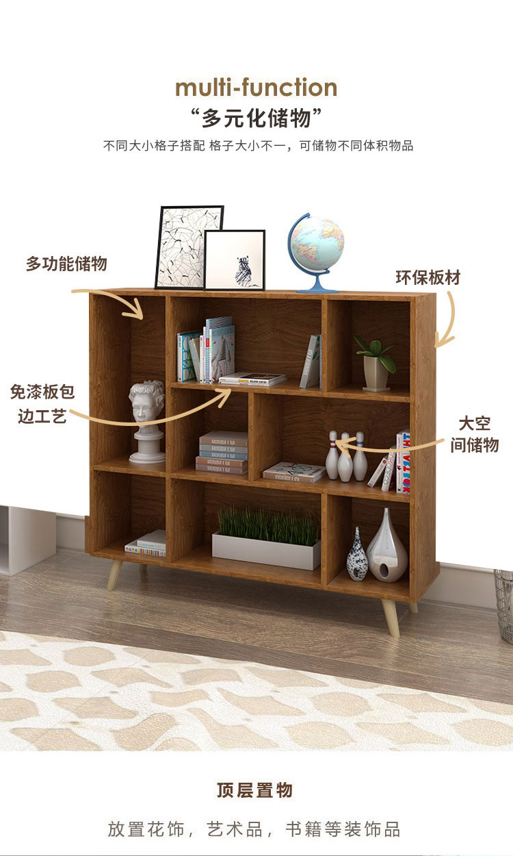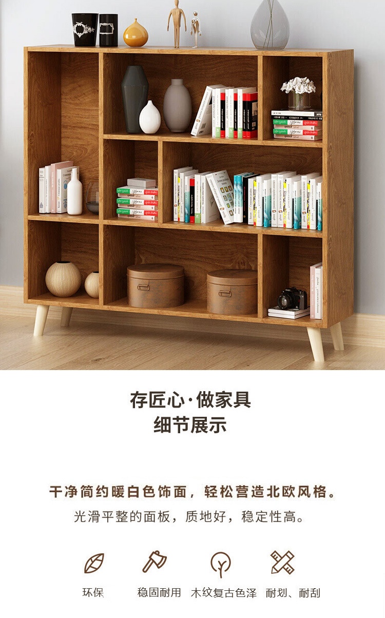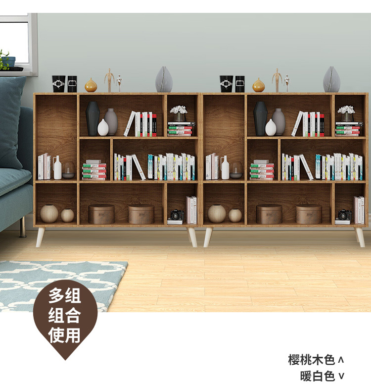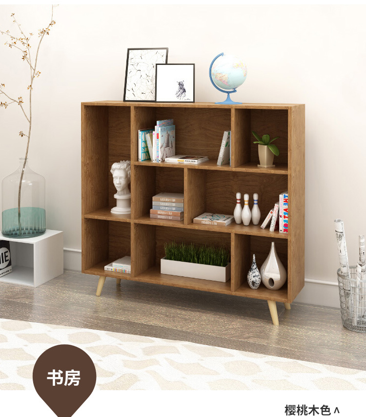 商品名称:木以成居 书柜 简易书架落地 储物柜简约客厅卧室厨房阳台办公玩具收纳柜子 书橱书柜 实木腿樱桃木色LY-4083