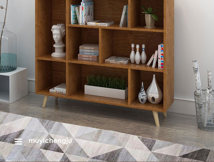 木以成居 书柜 简易书架落地 储物柜简约客厅卧室厨房阳台办公玩具收纳柜子 书橱书柜 实木腿樱桃木色LY-4083