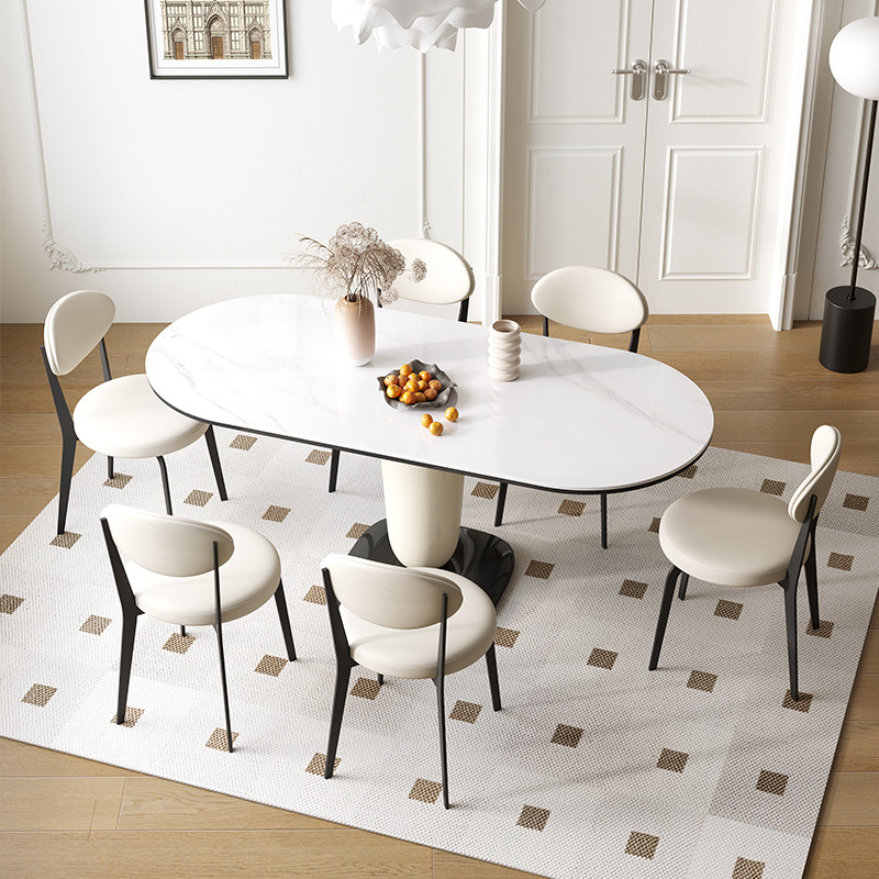 商品名称:法式奶油风餐桌椭圆形网红家用饭桌小户型岩板高级感ins风