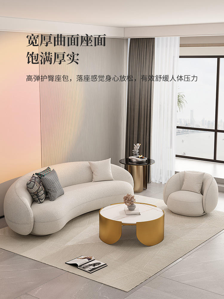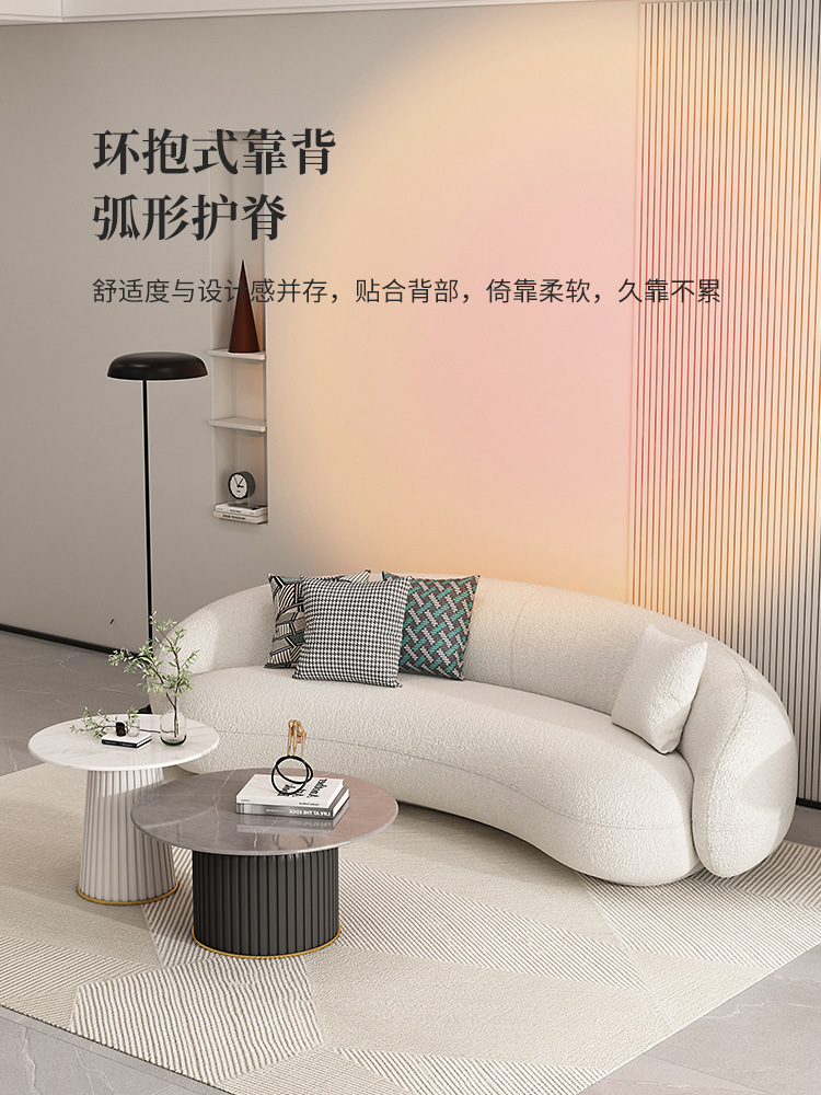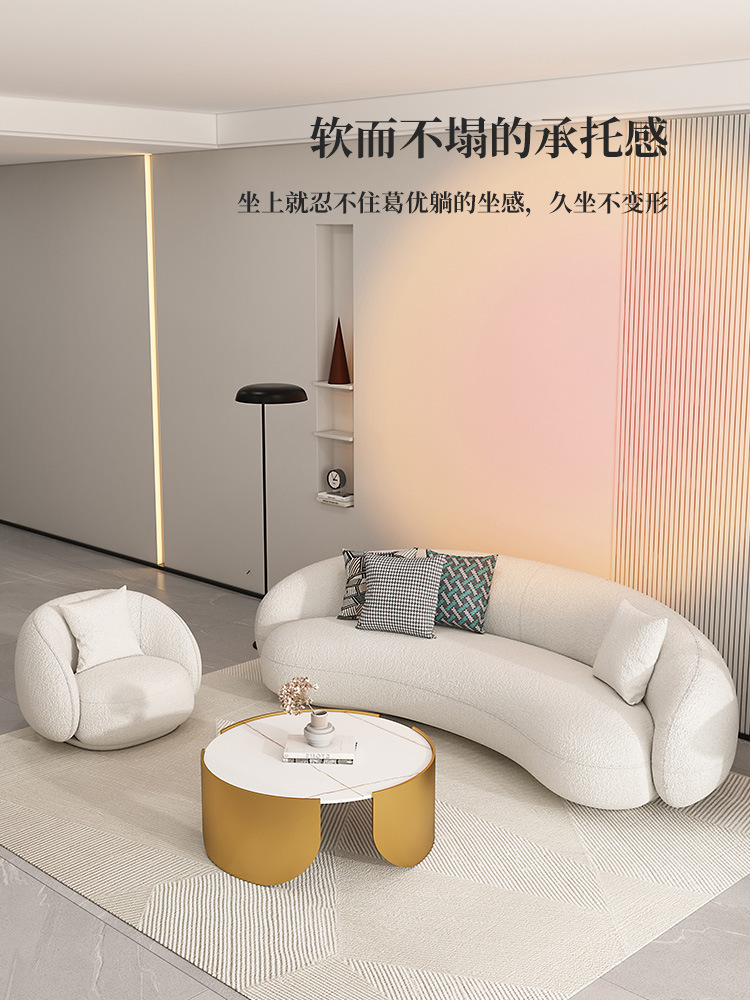 北欧羊羔绒弧形沙发美容院办公休闲接待小户型客厅沙发茶几组合