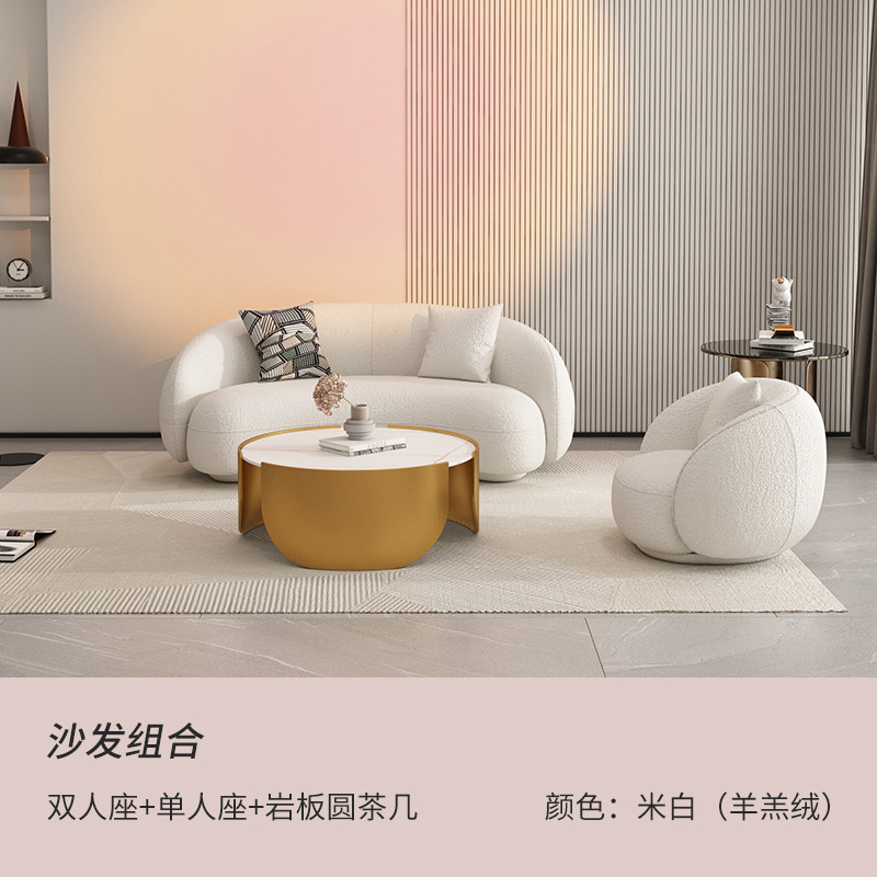 商品名称:北欧羊羔绒弧形沙发美容院办公休闲接待小户型客厅沙发茶几组合