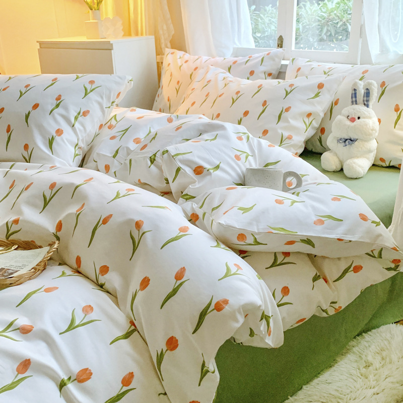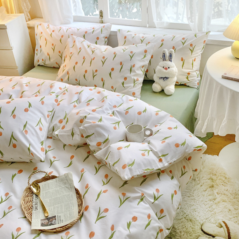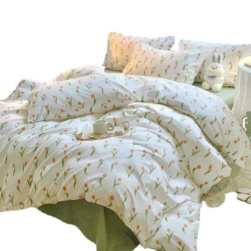 春夏全棉ins风 纯棉四件套40支小清新碎花田园床笠款南通宿舍家纺