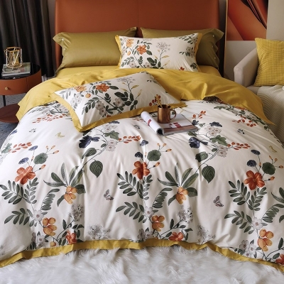 美式60支贡缎长绒棉纯棉床单四件套田园印花家纺全棉被套床上用品
