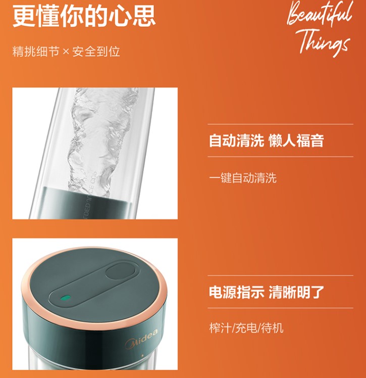 美的榨汁机小型便携式果汁杯电动家用多功能迷你充电式炸汁随行杯