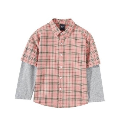商品名称:以纯线上品牌A21童装儿童衬衫假两件宽松2020春季新品中大童长袖纯棉格子上衣R401310004 粉红